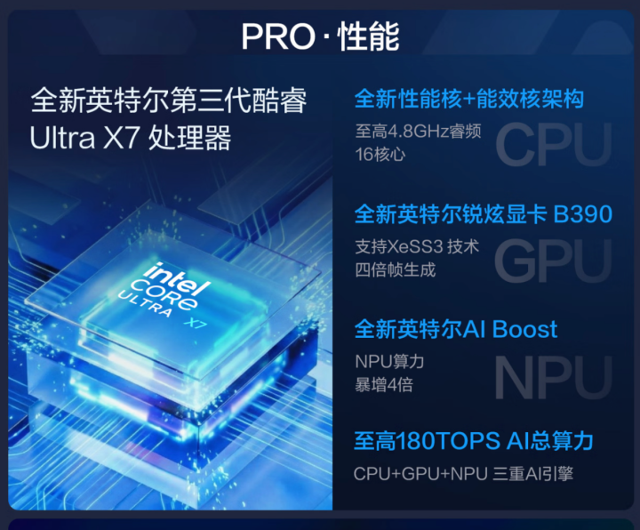1、性能升级:英特尔®酷睿™Ultra第三代处理器,AI与算力双重飞跃